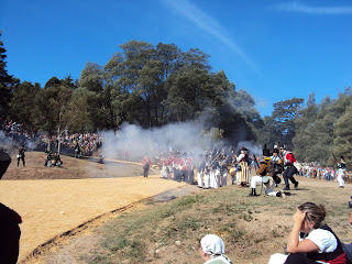 O que é que eu fiz? Hoje, levantei-me cedo, arranjei-me e abalei a toda a velocidade até ao Buçaco. Queria cumprir não só uma promessa como viver as comemorações dos duzentos anos de tão importante batalha cujas histórias contadas pelos familiares perduram na minha mente como se a tivesse também vivido. Não vou descrever a representação, muito bem cuidada com todos os pormenores, simulando um dos principais combates ocorridos naquela manhã. Só posso dizer que os ingleses eram ingleses, os franceses eram franceses e os portugueses eram portugueses. Trajados a rigor, soldados, oficiais e povo. Uma das mais belas lições de história que já tive até hoje. Muita gente a assistir, mas ao meu lado só ouvia falar inglês, ao ponto de julgar que a divulgação pela comunidade inglesa deverá ter sido impecável. Também ouvi muitos franceses que apesar de terem sido derrotados nem por isso deixaram de homenagear os milhares de compatriotas abatidos pelo exército ango-luso.